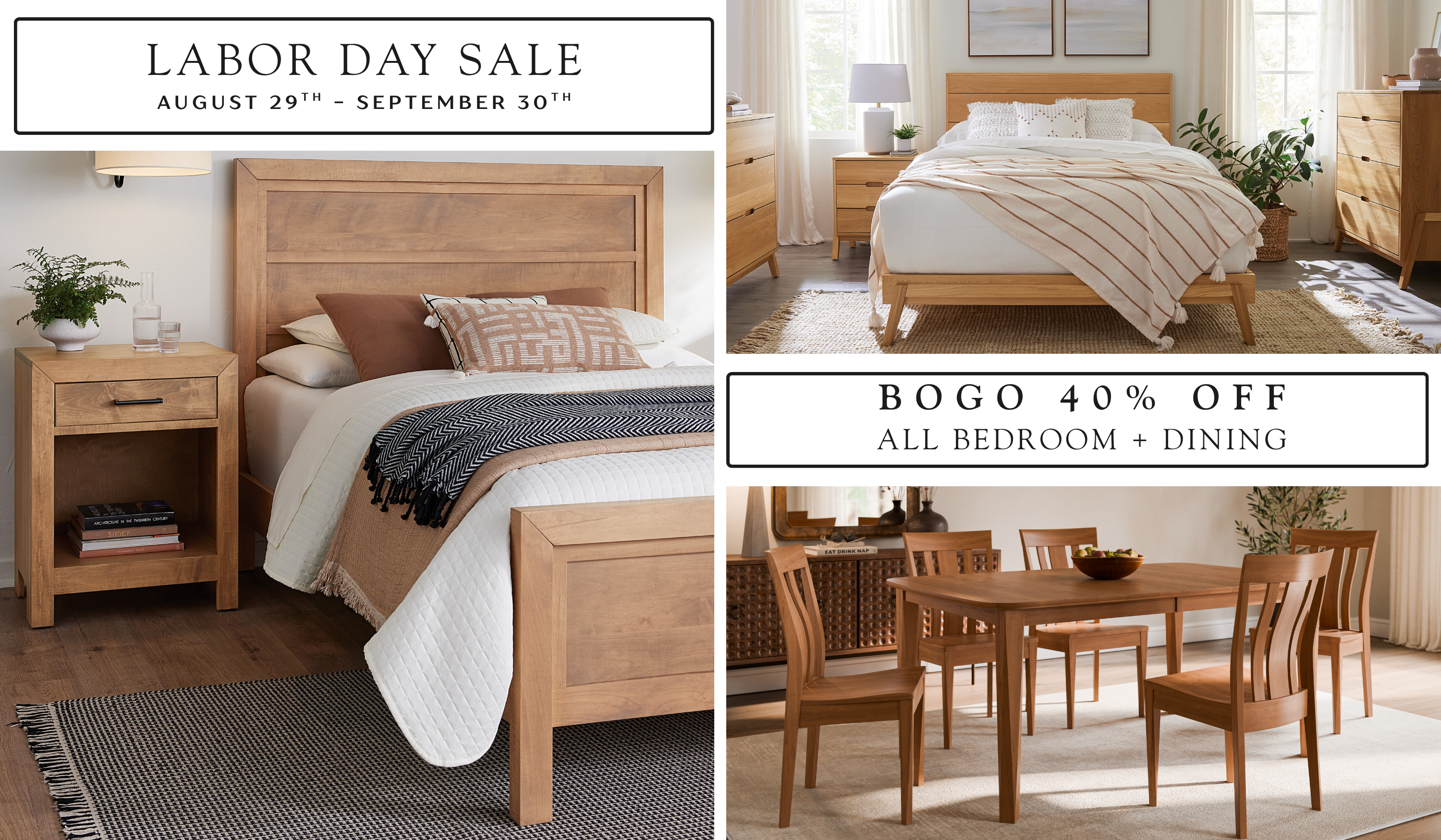 ALL Bedroom + Dining Furniture is BOGO 40% OFF!